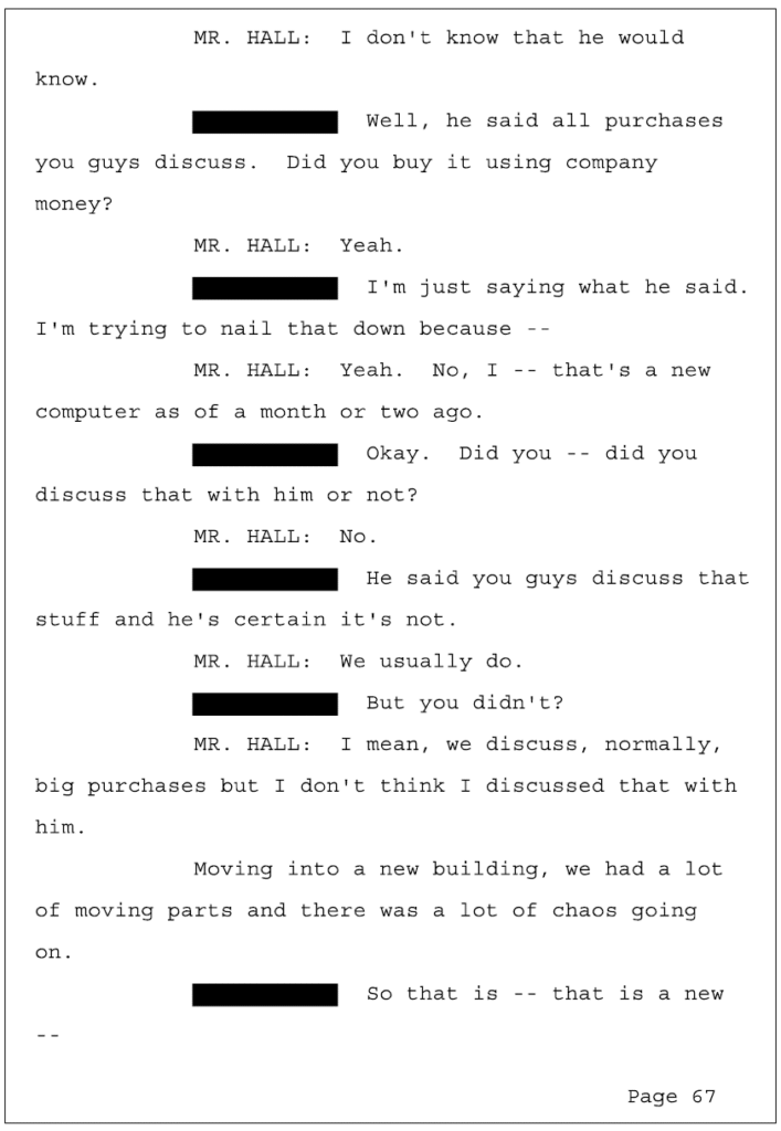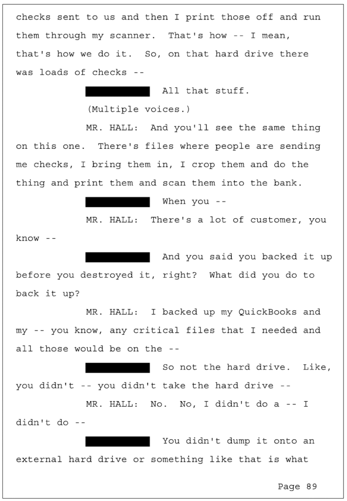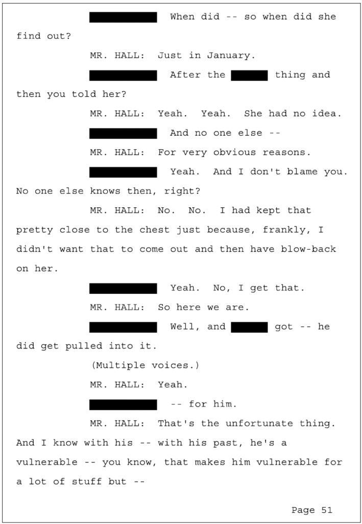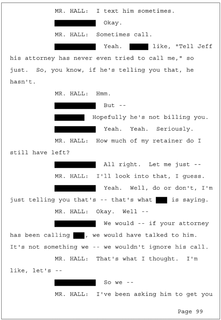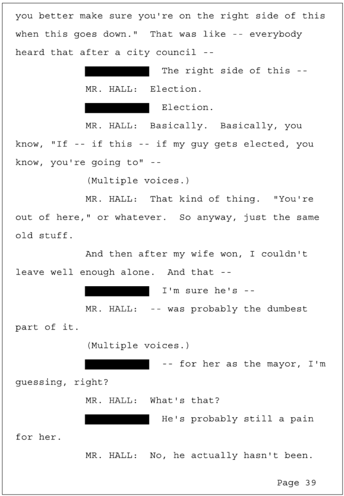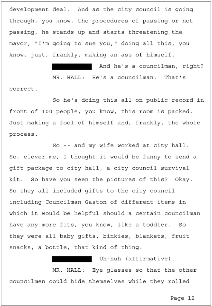 - 2 December 2020 to 20 December 2021 Forensics report made on April 12, 2022 of texting on Jason Hall’s cell phone, including several texts regarding Jeff Gaston.