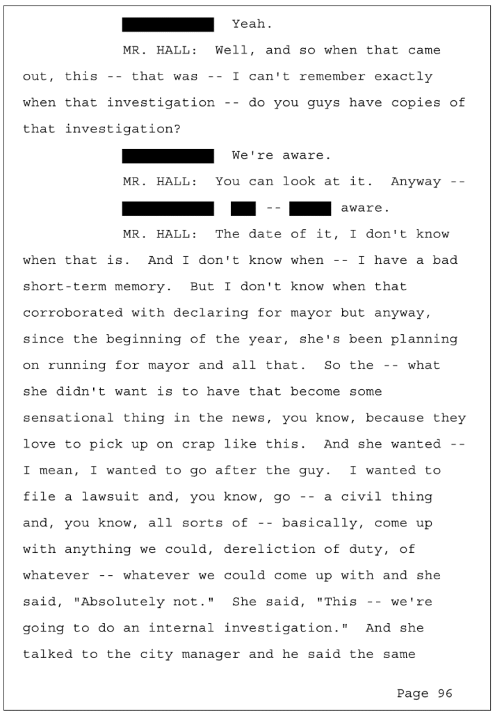 - 2 March 2022 Officer’s report of the forensics interview he did with Mayor Natalie Hall
