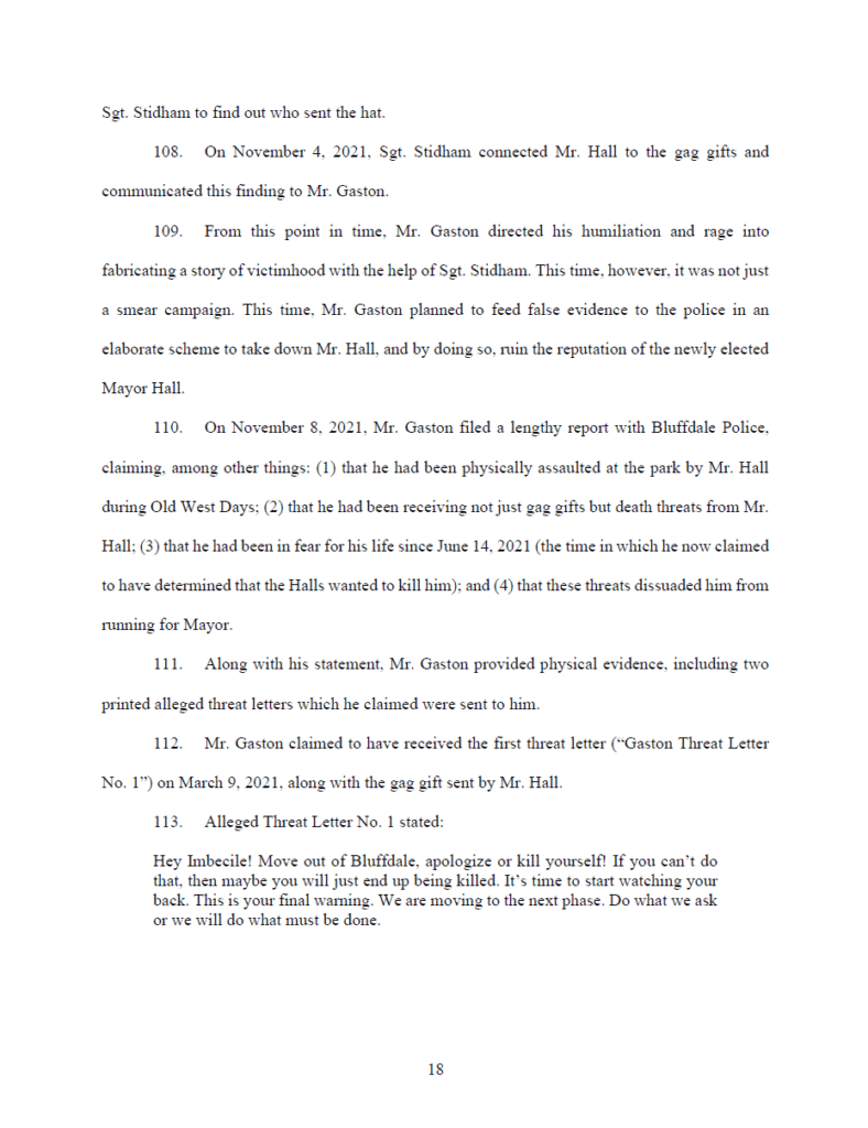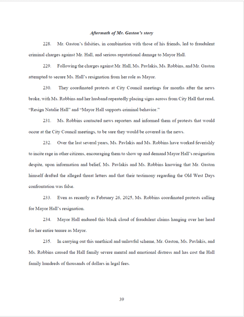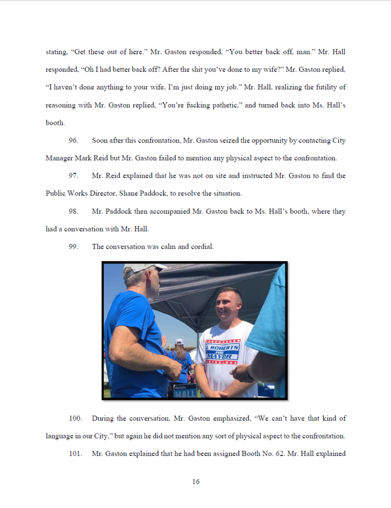 - 20 May 2025 Jason Hall’s report of the incident at Old West Days was included in his counterclaim to a civil lawsuit brought against him by Jeff Gaston.