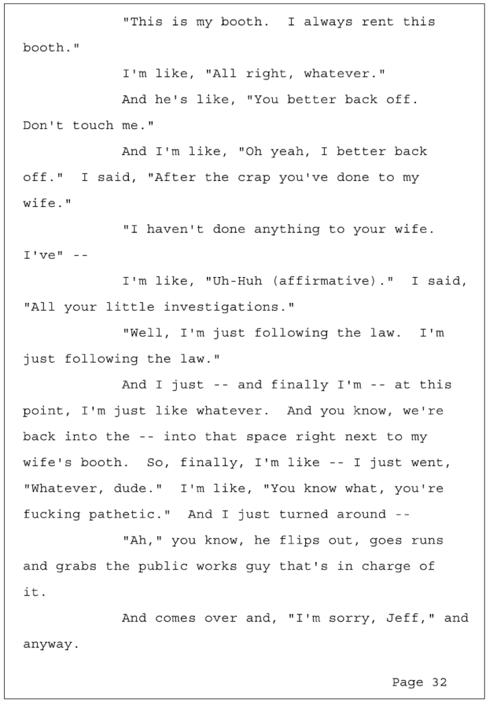14 August 2021 Incident at Old West Days in which Jason Hall allegedly hit Jeff Gaston with signs. Witness reports were gathered by the police later and follow.