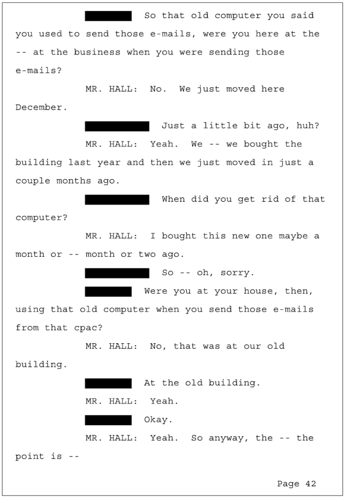 - 1 March to 20 July 2021 Forensics report utilizing data obtained through a search warrant to Google about possible ownership by Jason Hall of the accounts that sent emails to Jeff Gaston